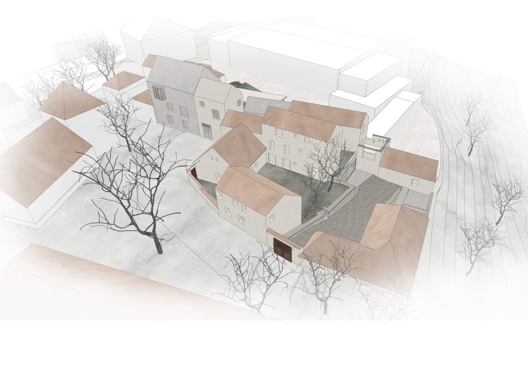 Nové části jsme rozdělili do menších hmot, které se postupně zvedají směrem k vrcholu kopce. Směrem nahoru kompozice graduje a vytváří orientační bod, aniž by narušila panorama Benešova. Architektura je tvarově střídmá a materiálově sjednocená – jednoduchost zde není omezením, ale nástrojem, jak dosáhnout klidného a kompaktního výrazu.