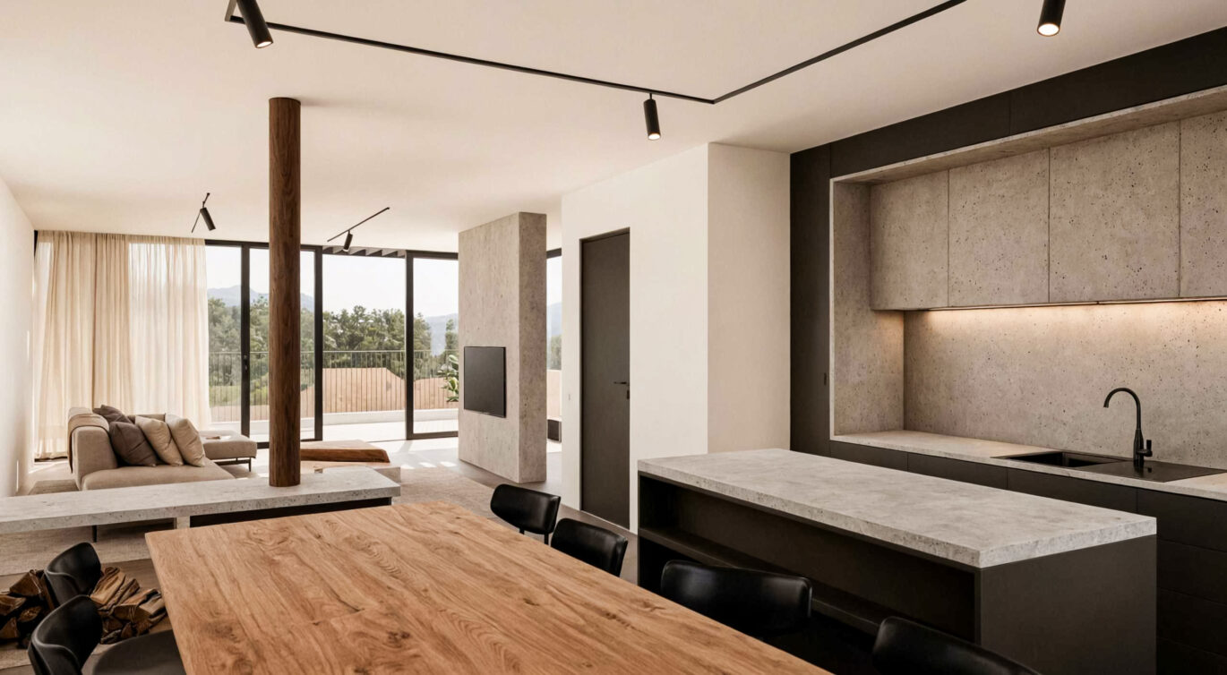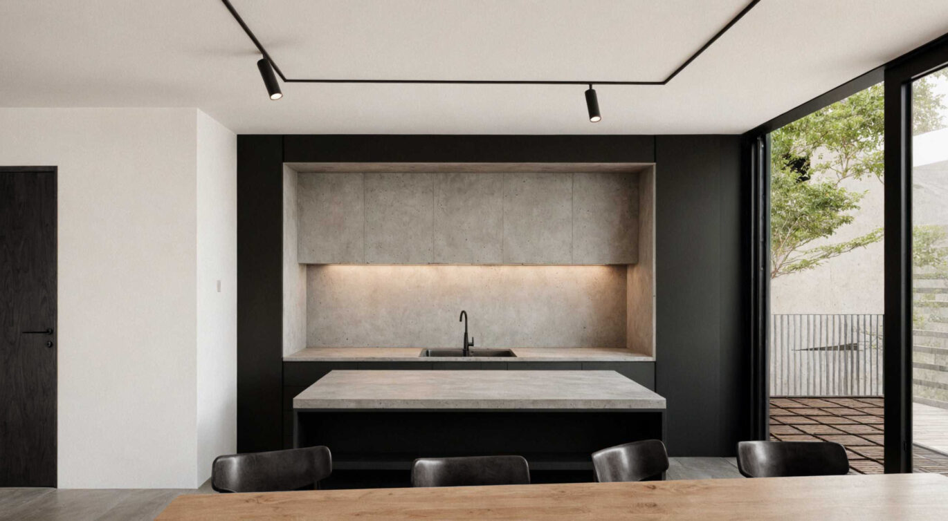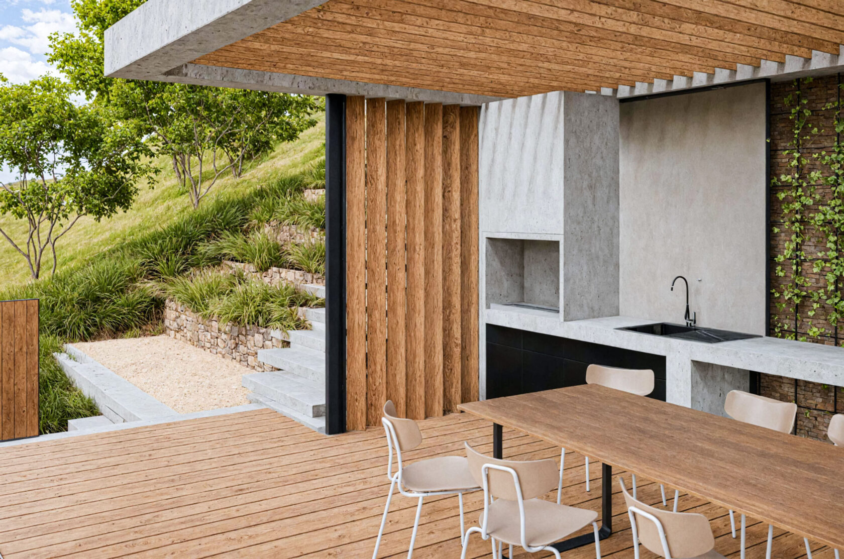 Zároveň komunikuje i se svažitou parcelou a přerůstá do letní kuchyně, která nabízí mnoho prostoru pro letní užití.