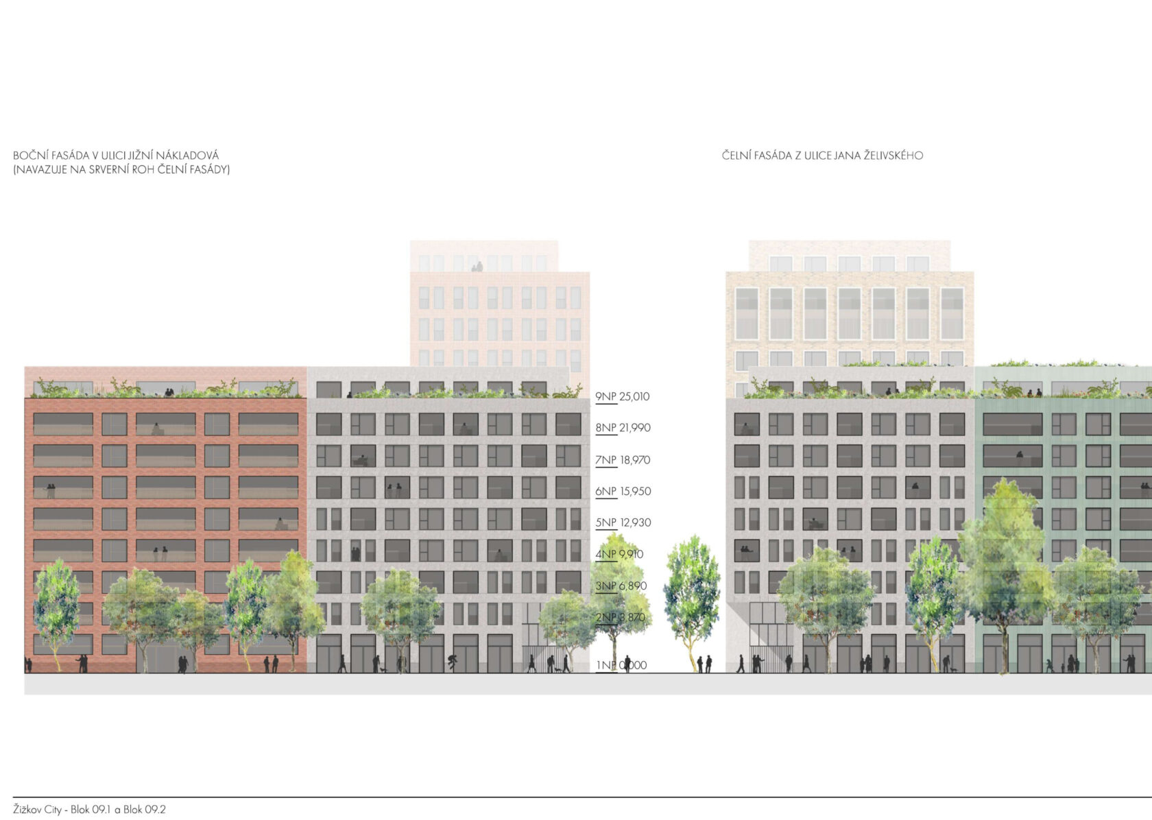 Návrh dvou městských bloků pro Žižkov tuto tradici rozvíjí a přetváří ji pro současnost. Vzniká čtvrť, která poskytuje kvalitní a dostupné bydlení, přirozeně reaguje na specifický kontext území — bývalé nákladové nádraží na severu, hřbitovní zeleň na jihu a volnější strukturu nové zástavby na západě — a současně posiluje charakter této části města.