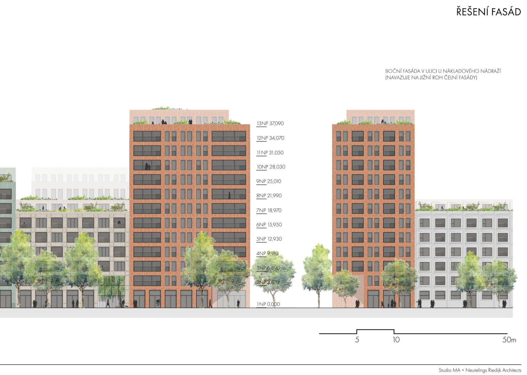 Dvě výškové akcenty — 12 podlaží + ustoupené patro